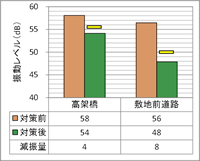 4Hzの振動を約5dB、12.5~20Hzの振動を約10dB低減。居住性に影響がない振動となった。